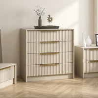 Set van 4 Draaibare Eetkamerstoelen Novan Beige Chenille – 180° Draaibaar