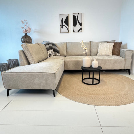3-zits hoekbank XXL Beige Ribstof plofbank Nia