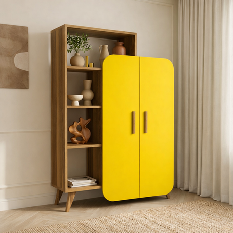299,95Eenheid prijs /Niet beschikbaarBoekenkast Form Walnoot Geel Melamine 90x132x32 cm