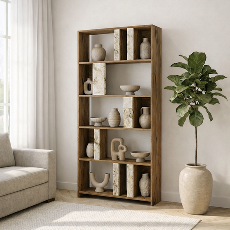 199,95Eenheid prijs /Niet beschikbaarBoekenkast Lima Walnoot Wit Marmer Melamine 90x180x20 cm