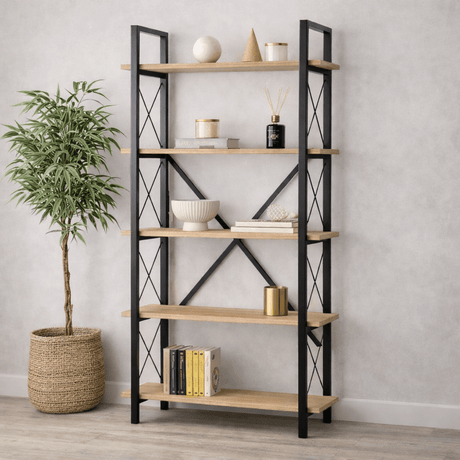 149,95Eenheid prijs /Niet beschikbaarIndustriële Boekenkast Ely Eiken Melamine - Zwart Frame - 180x90 cm