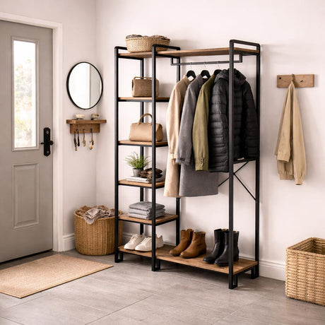 Garderobekapstok Karl 8-Haaks - Met Schoenenrek & Hoedenplank