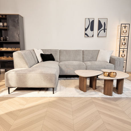 899,951.299,95Eenheid prijs /Niet beschikbaarHoekbank met compacte lounge beige gerecyclede stof Moby - links