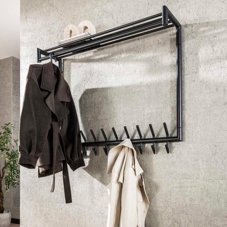 99,95Eenheid prijs /Niet beschikbaarKapstok Kris 12-Haaks Zwart - Met Roede & Hoedenplank