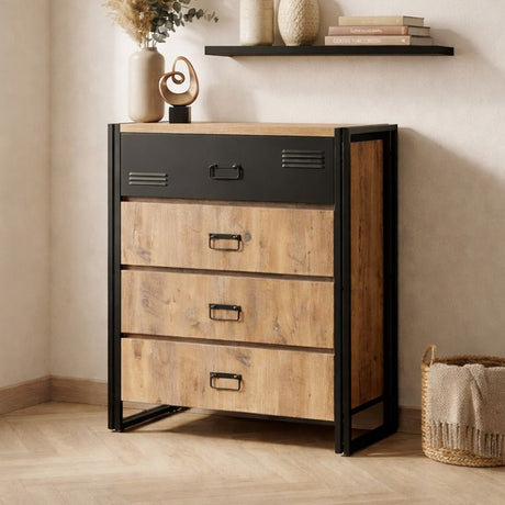 Ladekast Cosmo Atlantisch Dennenhout Zwart Melamine
