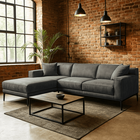 1.699,00Eenheid prijs /Niet beschikbaarIndustriële hoekbank antraciet eco-leer Brisbane - links
