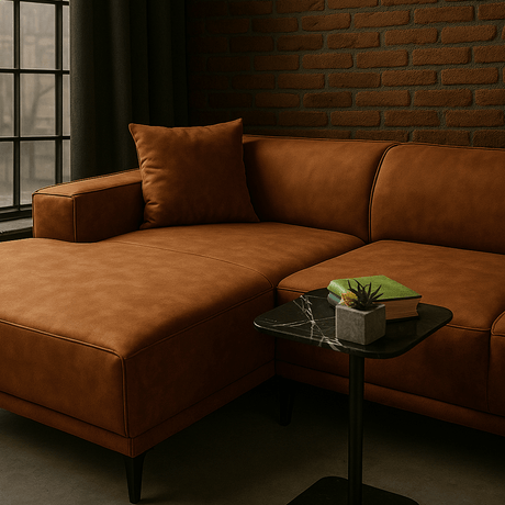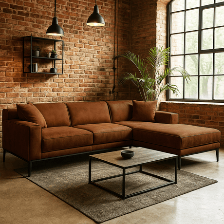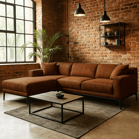 Industriële hoekbank cognac eco-leer Brisbane - links