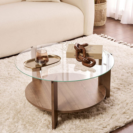 129,95Eenheid prijs /Niet beschikbaarCairo Salontafel Rond Ø75 cm Walnoot - Glas 75x75x40 cm