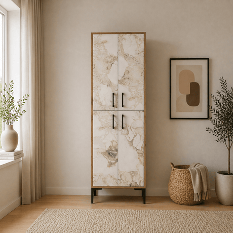 249,95Eenheid prijs /Niet beschikbaarWandkast Walnoot Wit Marmer Melamine 200x60x35 cm - Berlin