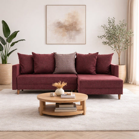399,00Eenheid prijs /Niet beschikbaarSlaapbank Japandi rood stof 2-zits - lage rug en verstelbaar - Taida