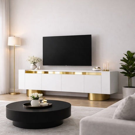 279,95Eenheid prijs /Niet beschikbaarTV Meubel Luxe Wit Goud Melamine 180x50x30 cm