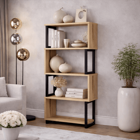 149,95Eenheid prijs /Niet beschikbaarIndustriële Boekenkast Ely Eiken Melamine - Zwart Frame - 180x90 cm