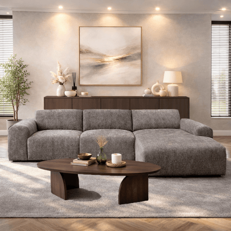 999,951.299,95Eenheid prijs /Niet beschikbaarHoekbank met lounge taupe chenille stof Shane - rechts