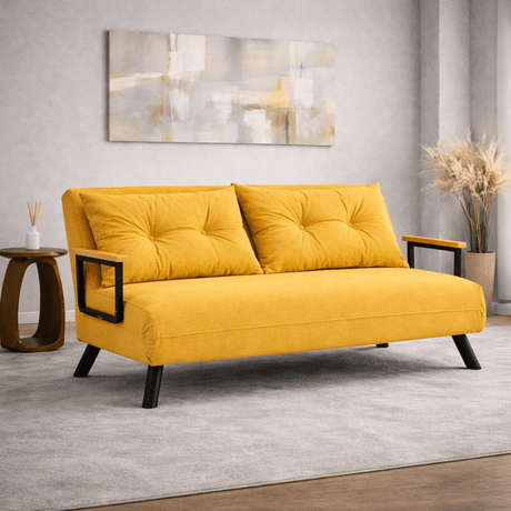 Landelijke slaapfauteuil Mosterd Geel stof linnen look Sando