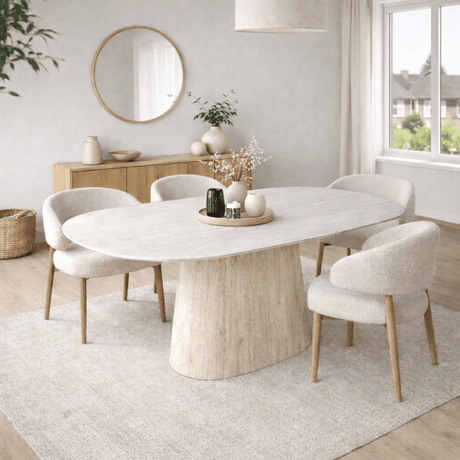 Sintered Stone Marmerlook Travertine Eettafel Lea 180x90 cm - Deens Ovaal