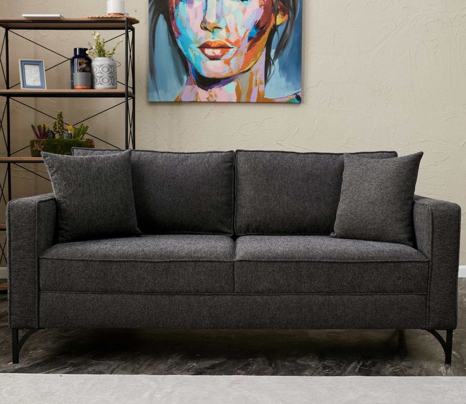 Met zijn strakke ontwerp en effen kleur straalt onze sofa een verfijnde sfeer uit die uw zintuigen zal betoveren. De antraciet tint voegt een vleugje moderniteit toe, terwijl de zwarte accenten een gevoel van nieuwigheid geven, waardoor hij perfect past in elke eigentijdse omgeving. Of je nu een op een hotel geïnspireerde sfeer wilt creëren of een industriële esthetiek wilt omarmen, deze bank past zich moeiteloos aan jouw unieke stijl aan.
