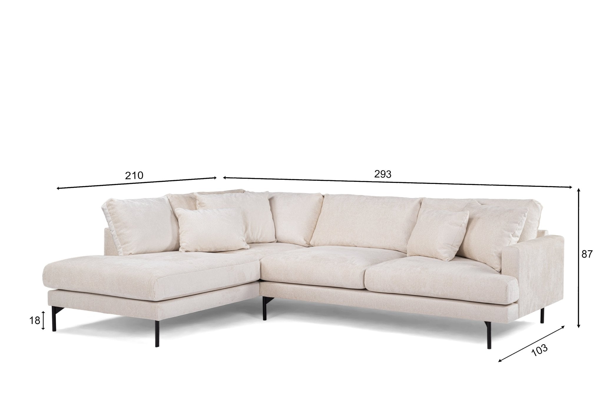 Beschrijving en specificaties van 3-zits hoekbank Aivy stof beige