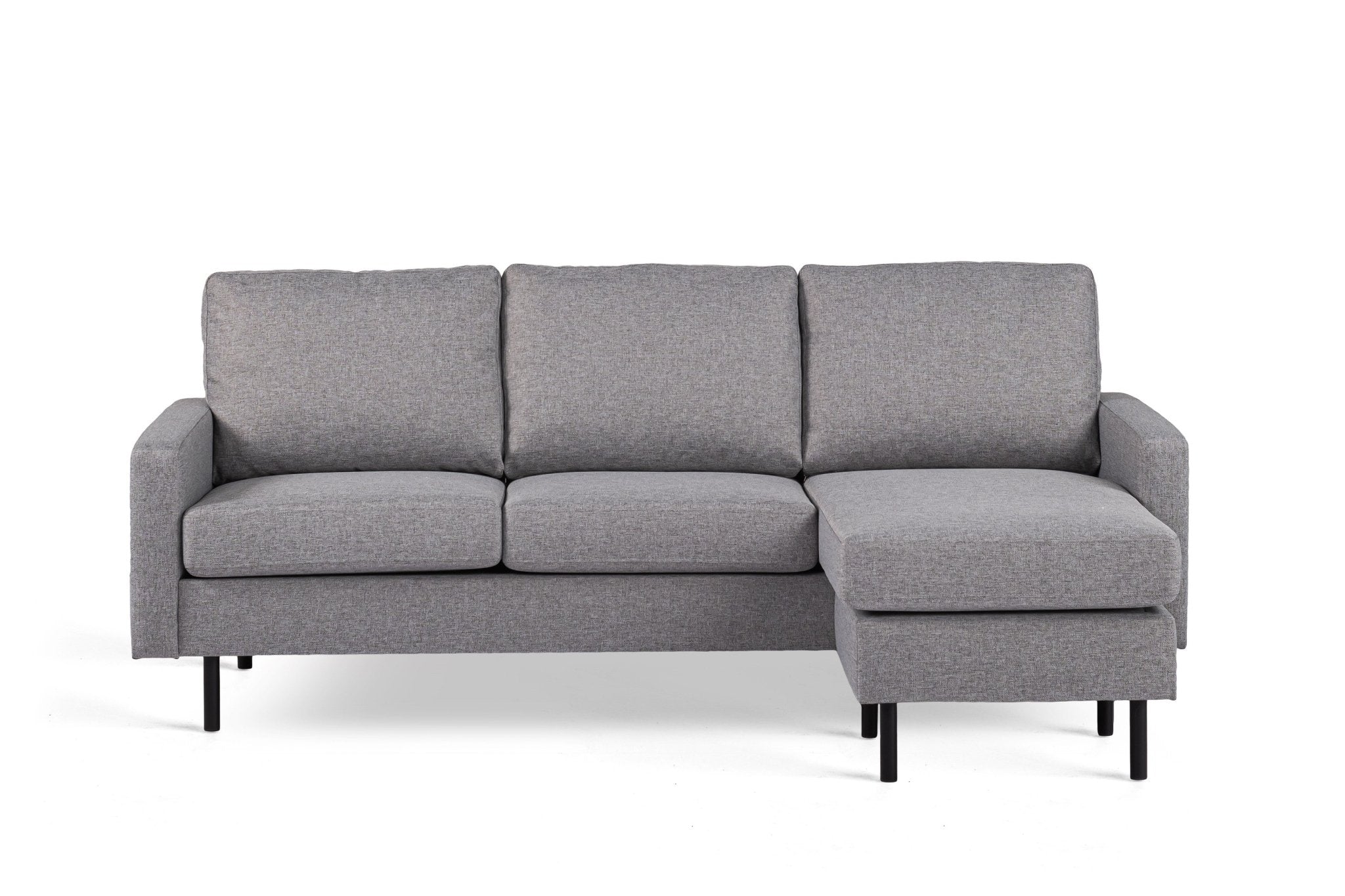 Beschrijving en specificaties van 3-zits hoekbank chaise longue Miller grijs