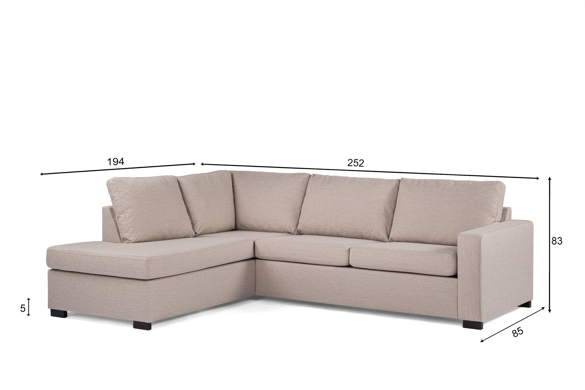 Beschrijving en specificaties van 3-zits hoekbank Cooper stof beige