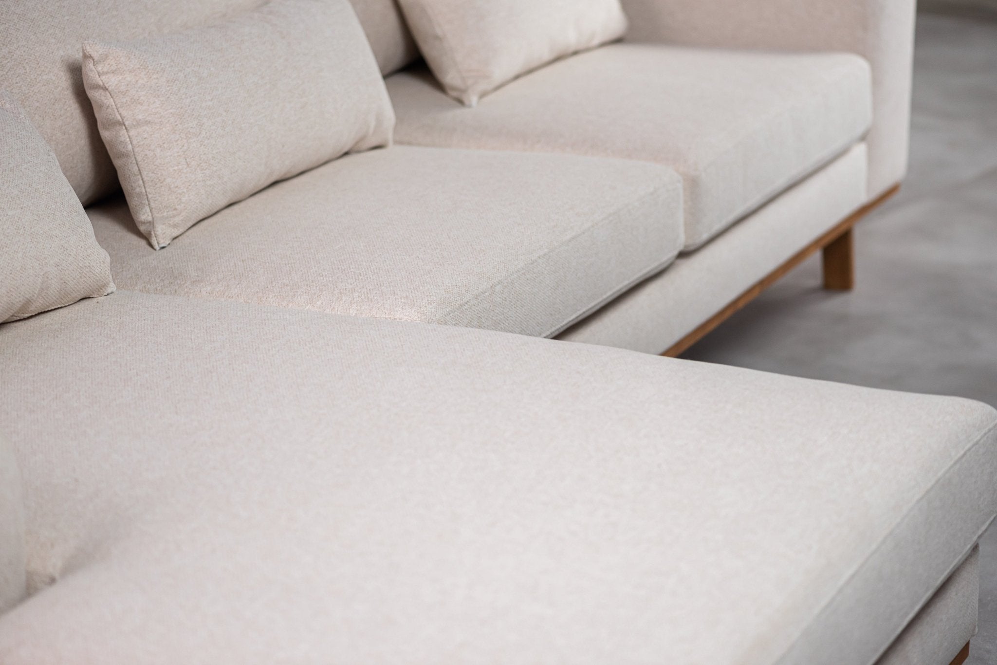 Beschrijving en specificaties van 3-zits hoekbank Ezra stof beige