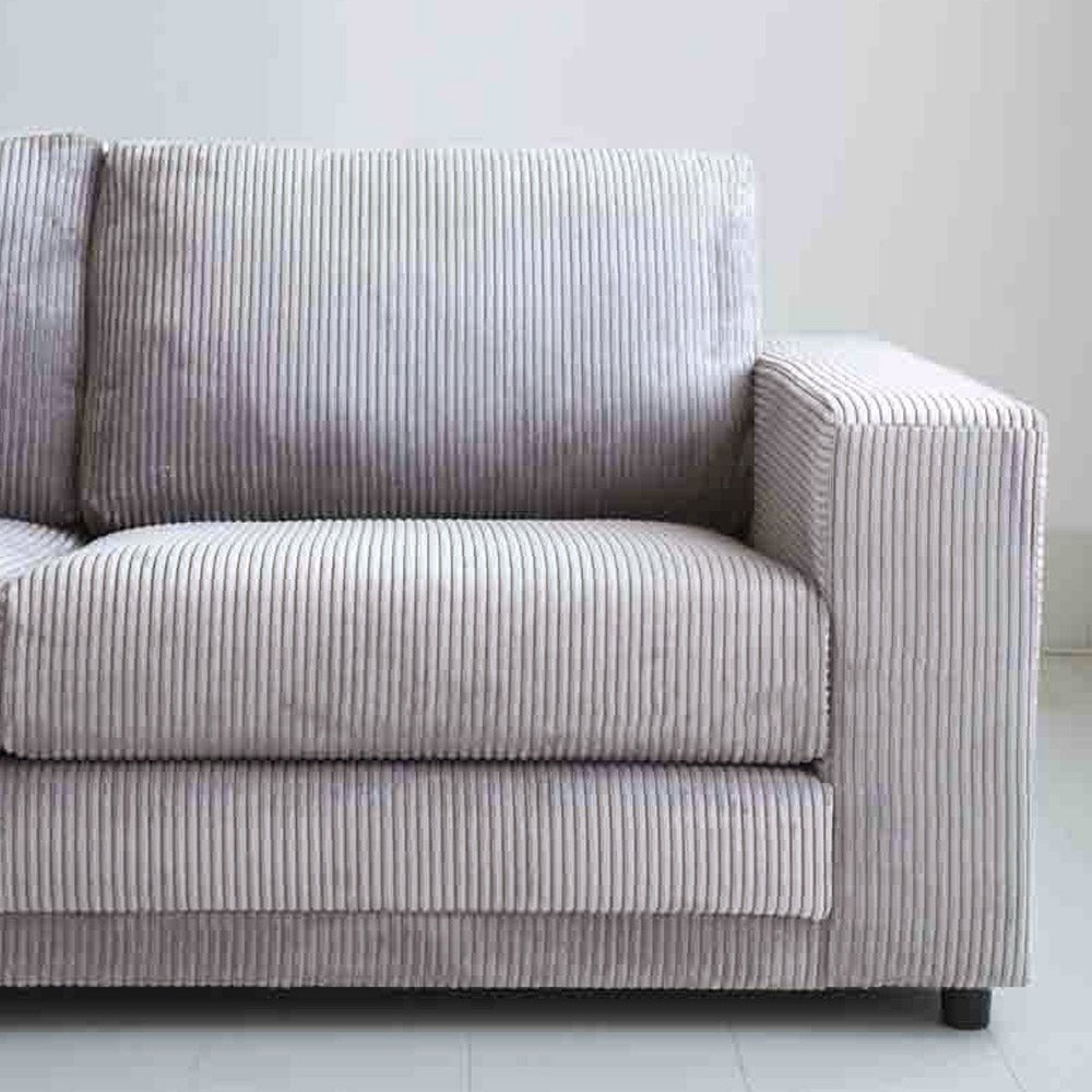 Hoekbank lichtgrijs ribstof plofbank Gabi - links