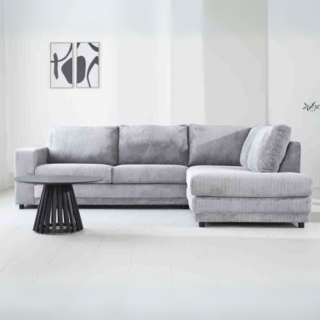 Hoekbank lichtgrijs ribstof plofbank Gabi - rechts