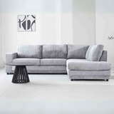 Beschrijving en specificaties van Hoekbank lichtgrijs ribstof plofbank Gabi - rechts