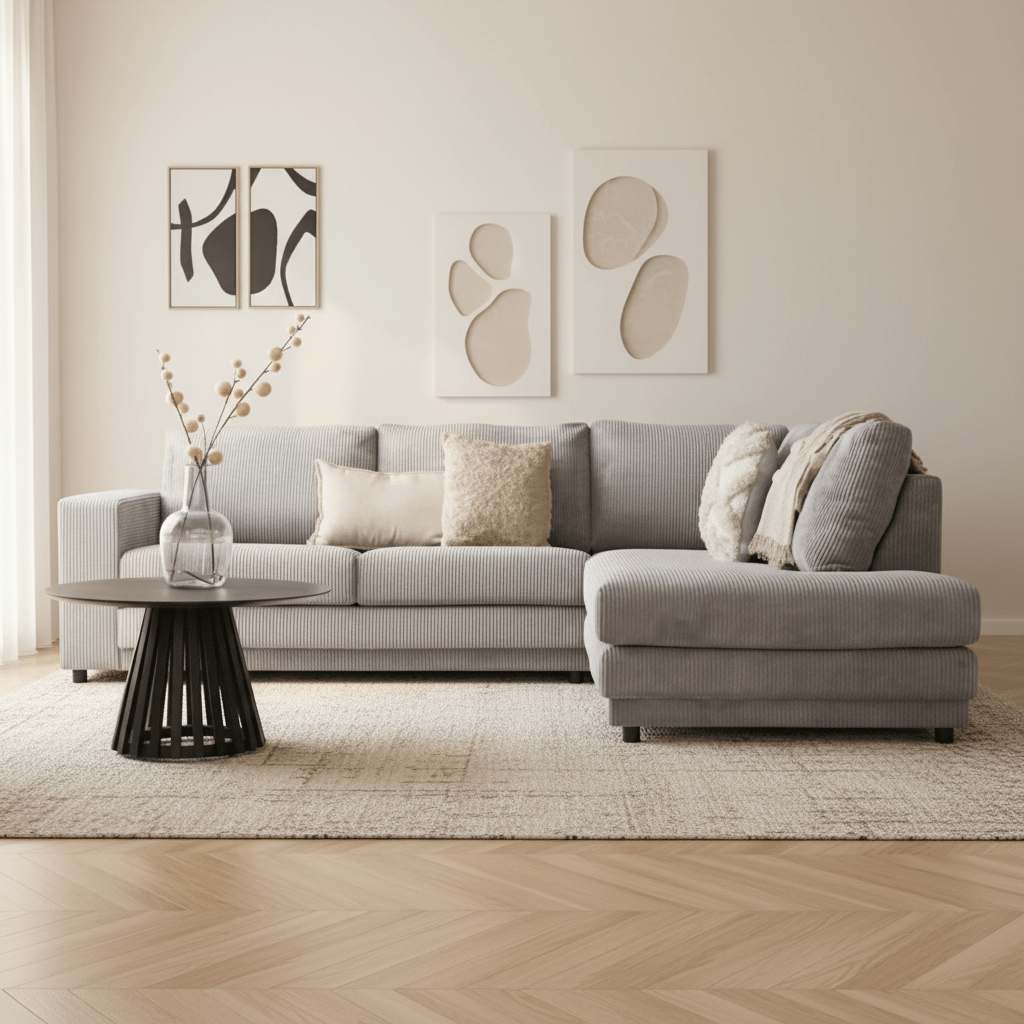 De hoekbank Gabi is de perfecte toevoeging voor een modern of industrieel interieur. Het design is niet alleen prachtig voor het oog, maar de bank zit ook nog eens enorm comfortabel. De hoekbank heeft brede zittingen waar je met gemak met meerdere mensen op kan zitten. Wil jij heerlijk ontspannen na een zware werkdag? Dan is deze hoekbank ribstof Gabi echt iets voor jou!