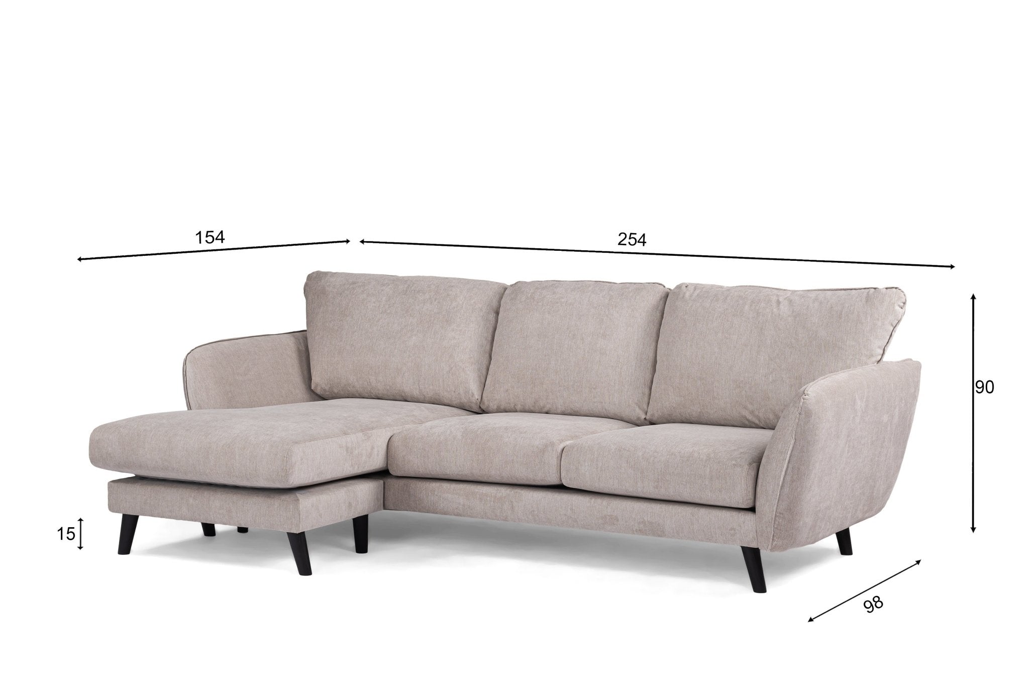 Beschrijving en specificaties van 3-zits hoekbank Leah beige