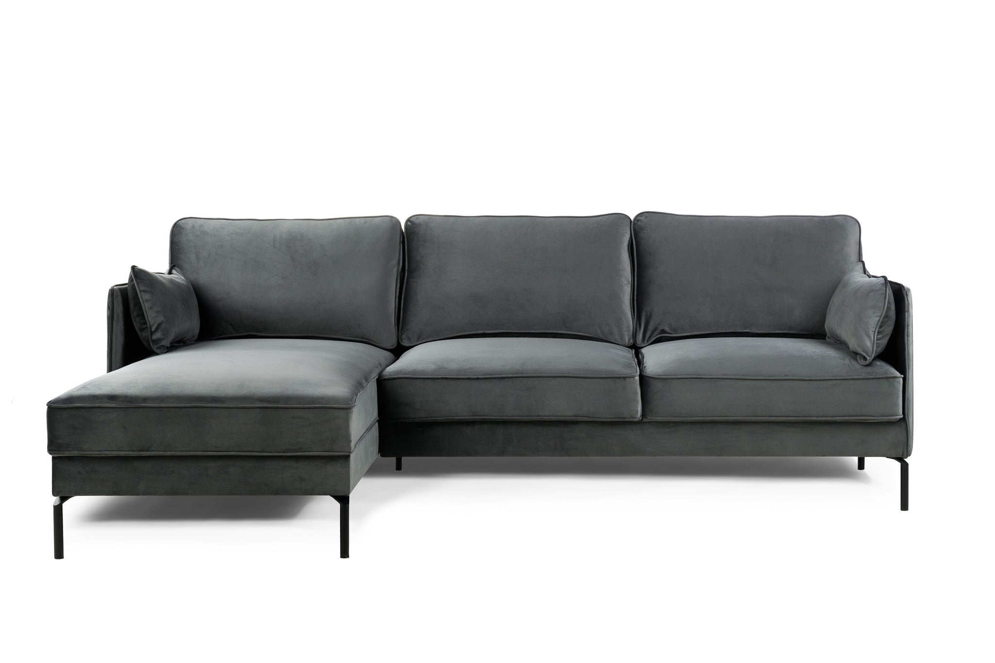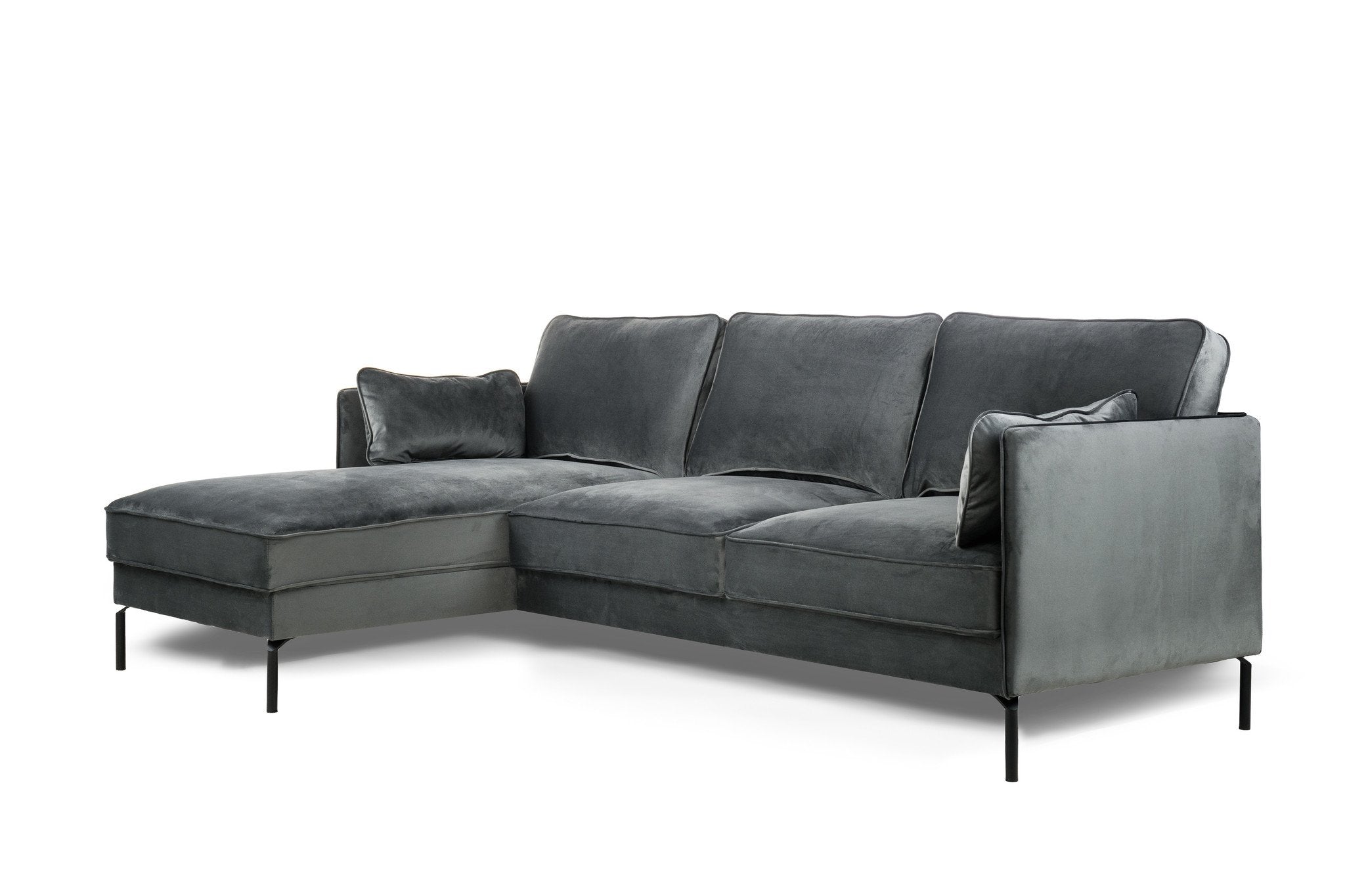 Beschrijving en specificaties van Hoekbank Peppin velvet donkergrijs - links
