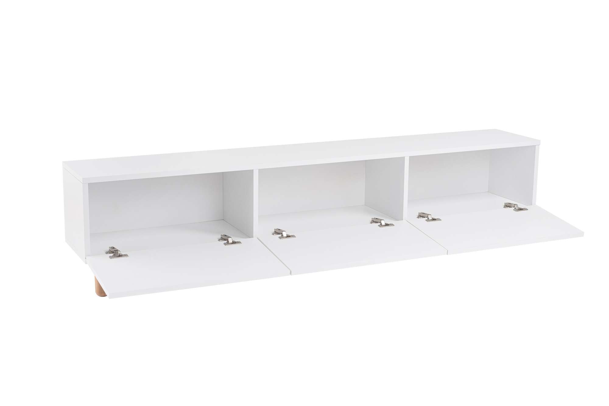 Beschrijving en specificaties van Modern TV Meubel Alvin Wit met houten poten 180 cm Melamine