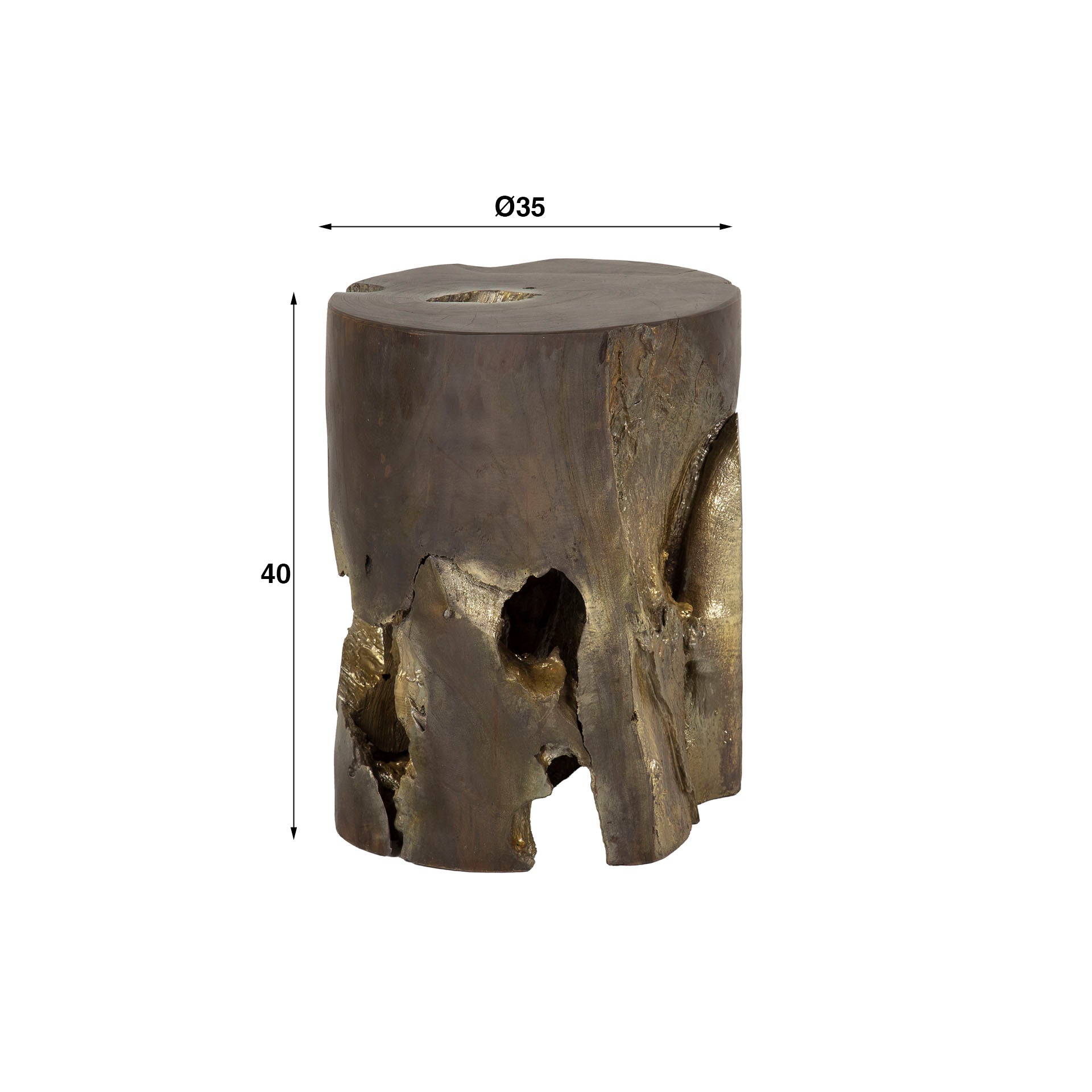 Beschrijving en specificaties van Bijzettafel Reza teakhout grijs goud rond