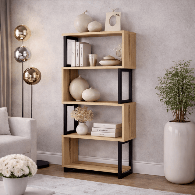 Gemaakt van 100% melamine, is deze boekenplank niet alleen duurzaam maar straalt hij ook een gevoel van verfijning uit. Het metalen frame voegt een vleugje industriële charme toe, waardoor het een veelzijdig meubelstuk is dat zowel moderne als traditionele interieurs aanvult.