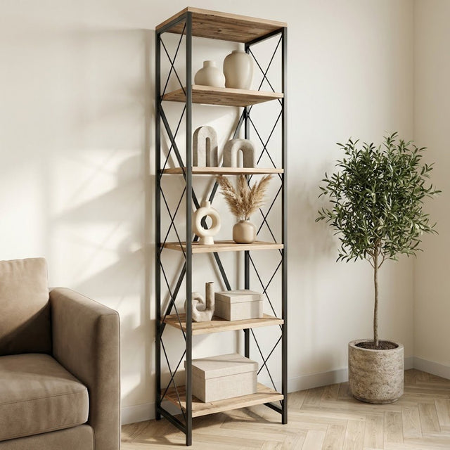 Met zijn strakke ontwerp en unieke combinatie van Atlantisch grenen en zwarte kleuren voegt deze boekenplank moeiteloos een vleugje verfijning toe aan elke kamer. Of je nu een hedendaags of traditioneel interieur hebt, het industriële concept van deze boekenplank past bij elke stijl, waardoor het een veelzijdige toevoeging aan je huis is.