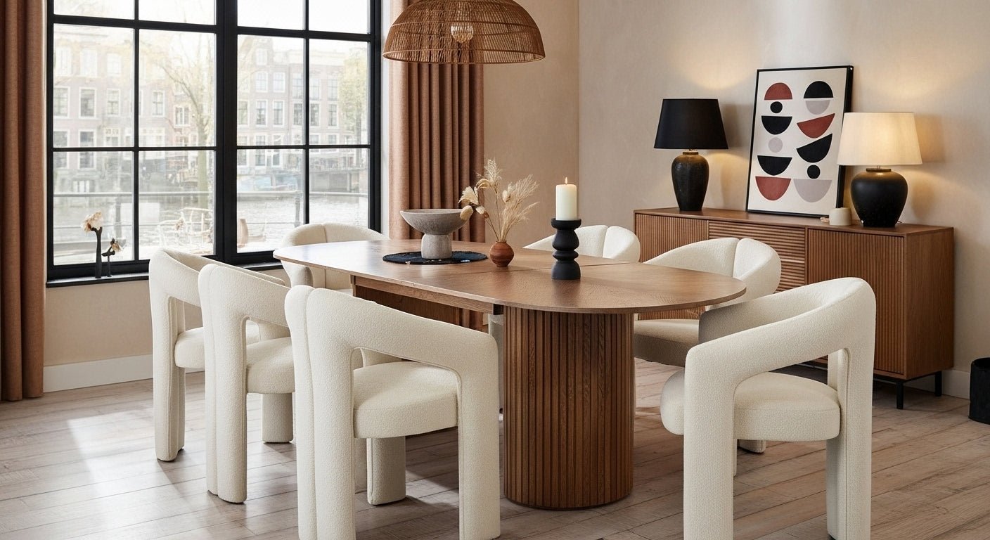 ✔ Ronde, vriendelijke vormvoering met armleuning. Ideaal voor lange dineravonden!