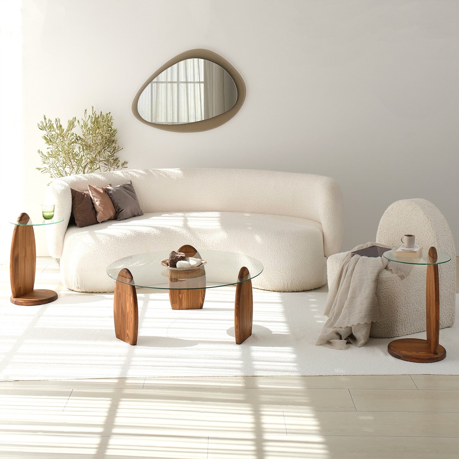 - Materiaal: 100% gehard glas, 100% massief houten frame