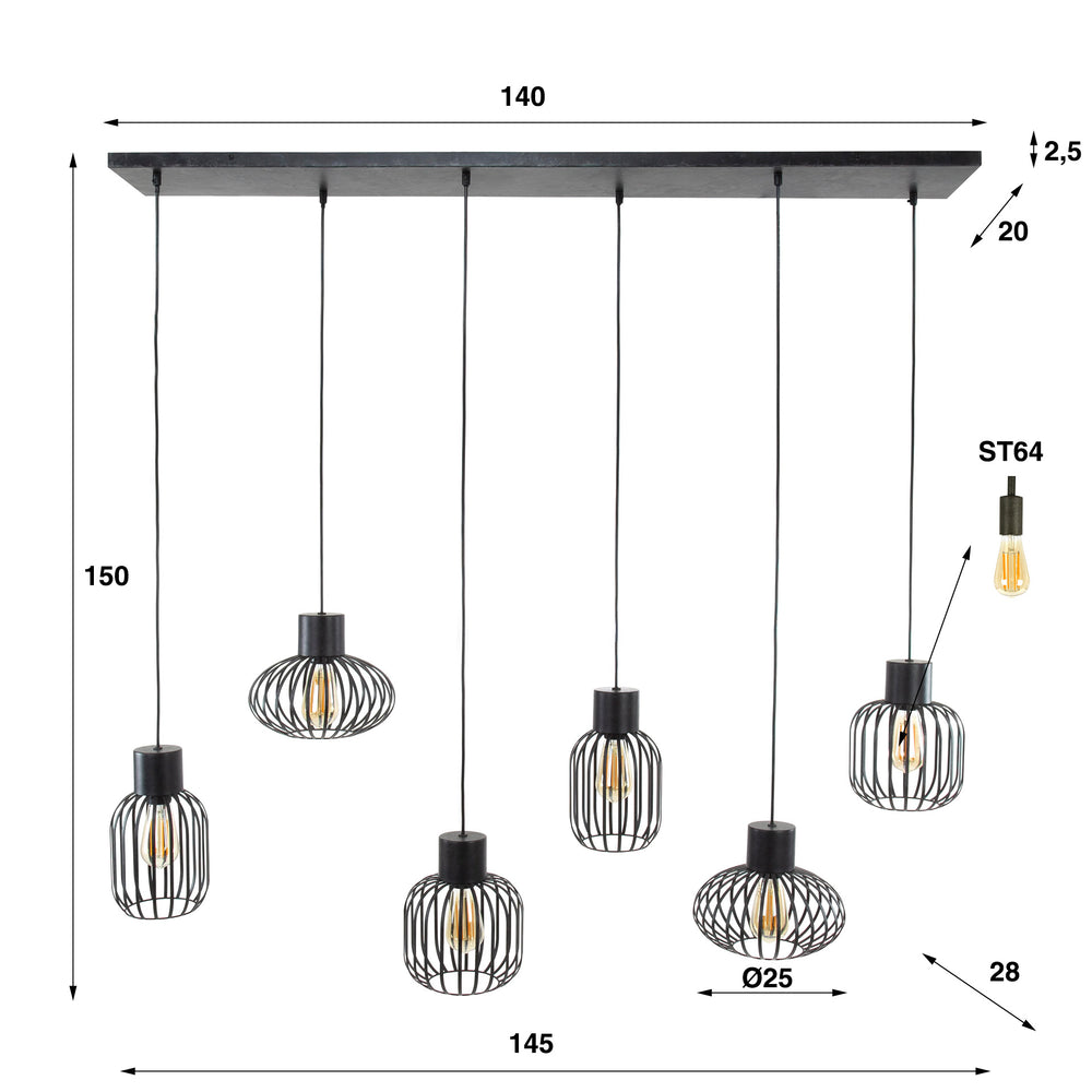 Beschrijving en specificaties van Hanglamp Industrieel Luise Metaal 6-Lichts