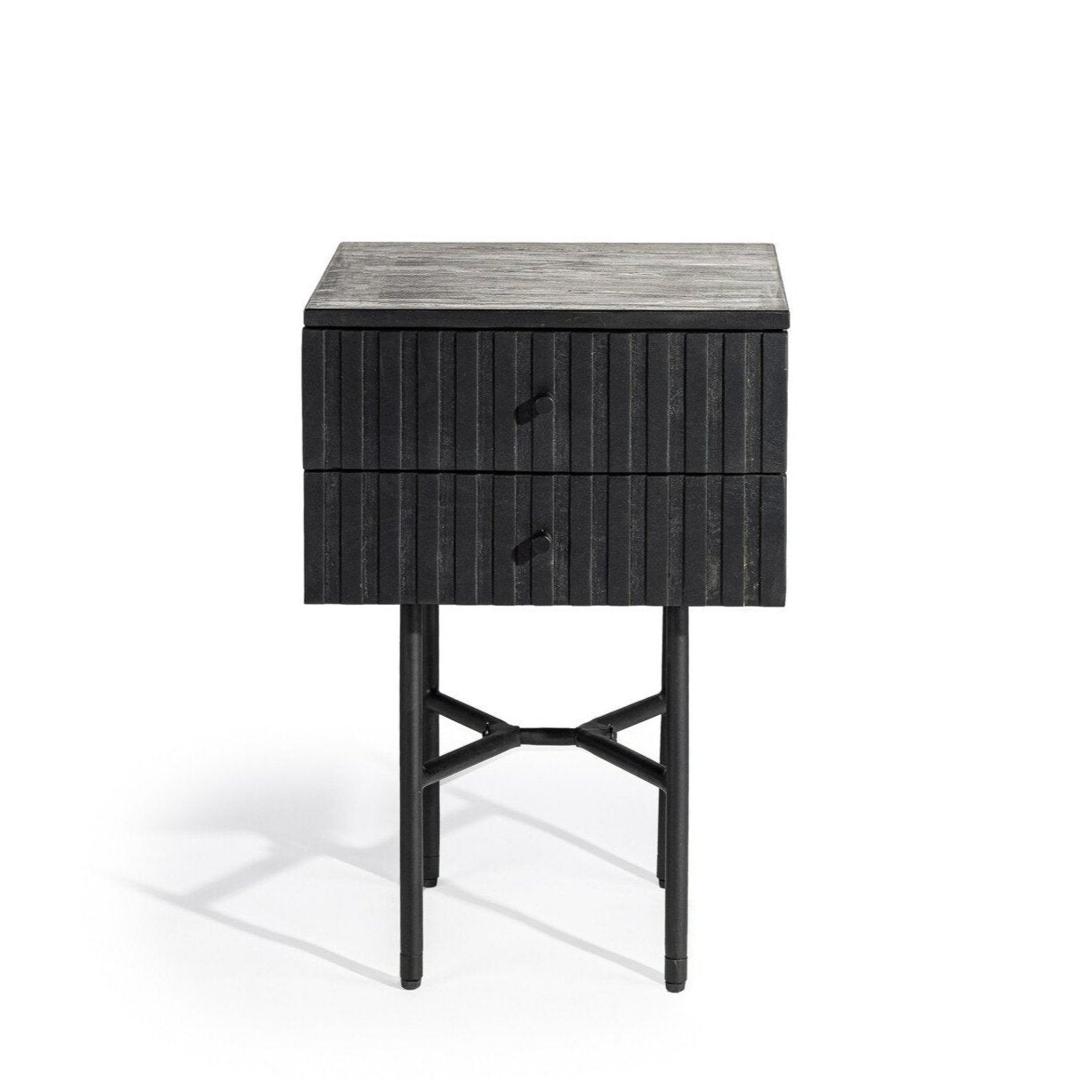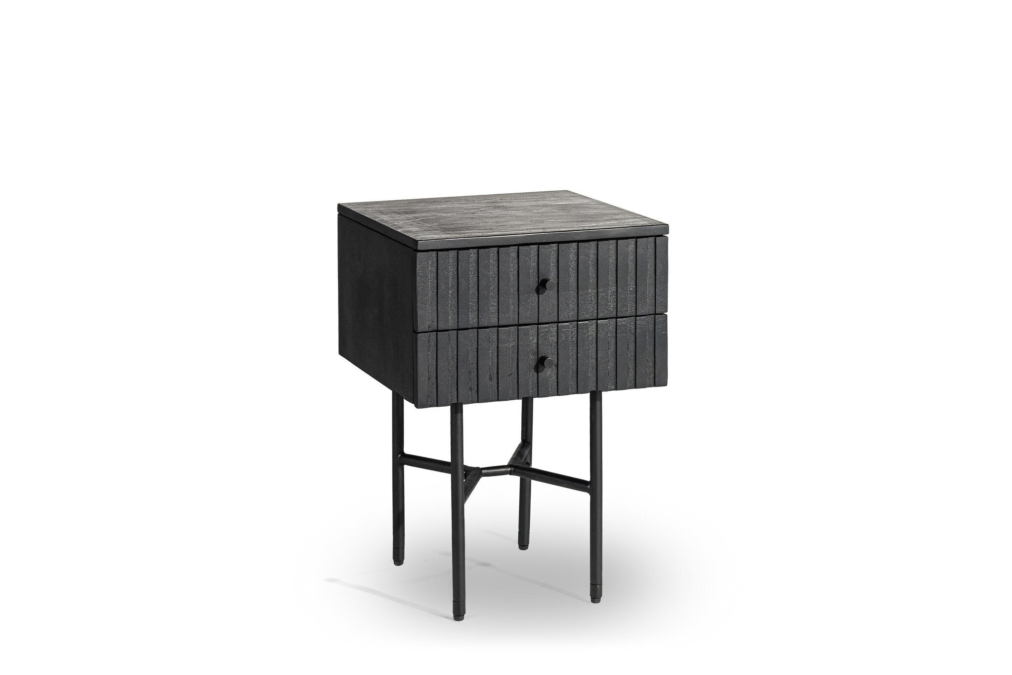 Het frame van nachtkastje Michelle is gemaakt van zwart staal. Hierdoor krijgt het nachtkastje een extra stoere uitstraling.