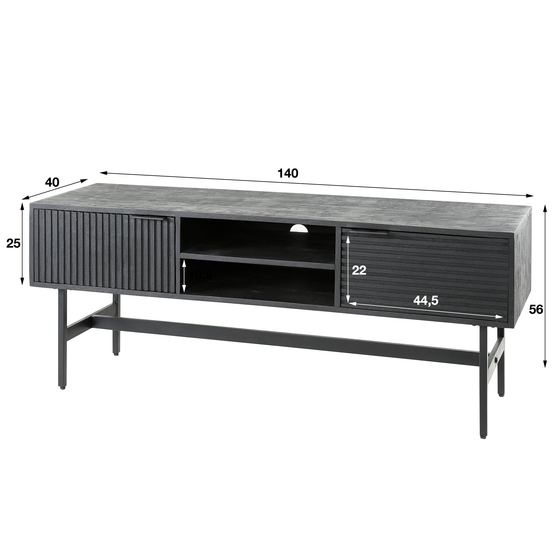 TV Meubel Zwart Mangohout Hazel 2-deurs 140x40x55 cm