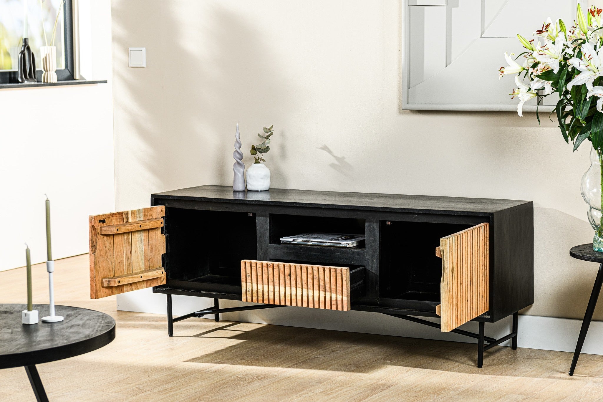 Dit tv-meubel is ideaal om je spullen op te bergen. Daarnaast is het natuurlijk enorm leuk om hier al je mooiste accessoires op te zetten!