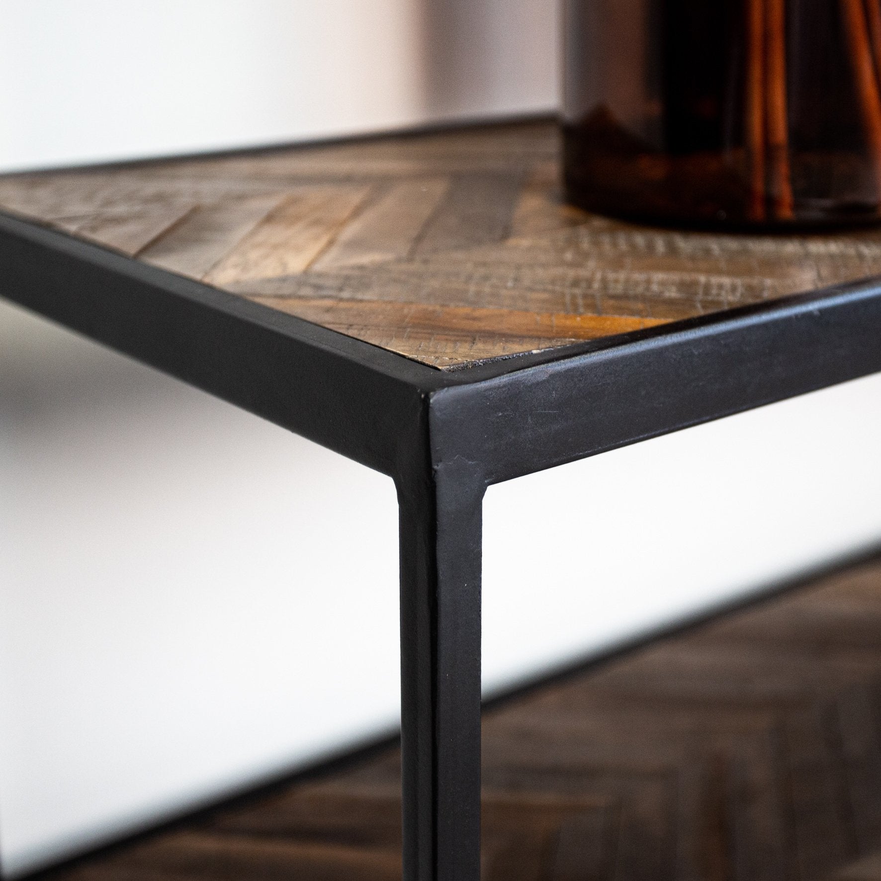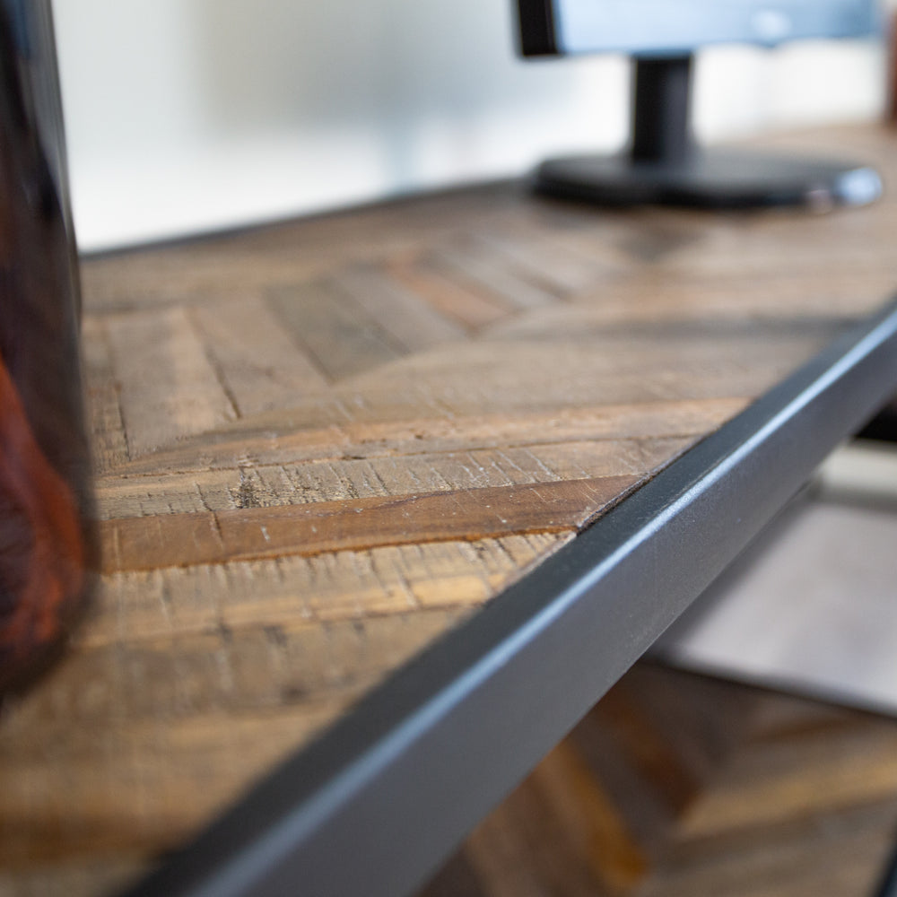 Is dit geen prachtig industrieel TV-meubel in chic visgraat? TV-meubel Sylvie maakt jouw interieur helemaal af! Het meubel past perfect in ieder interieur dankzij de prachtige uitstraling; industrieel, stoer en chic! Daarnaast biedt TV-meubel Sylvie voldoende opbergruimte voor jouw televisiekastje, tijdschriften en accessoires dankzij de leggers.