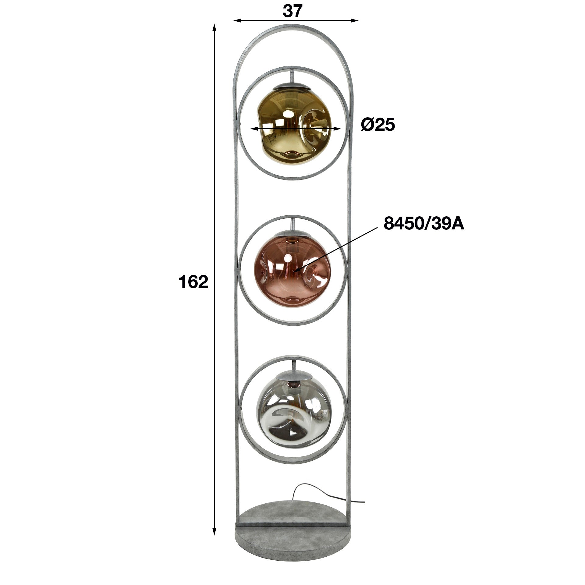 Beschrijving en specificaties van Industriële Vloerlamp Ada Gekleurd Glas 3-lichts