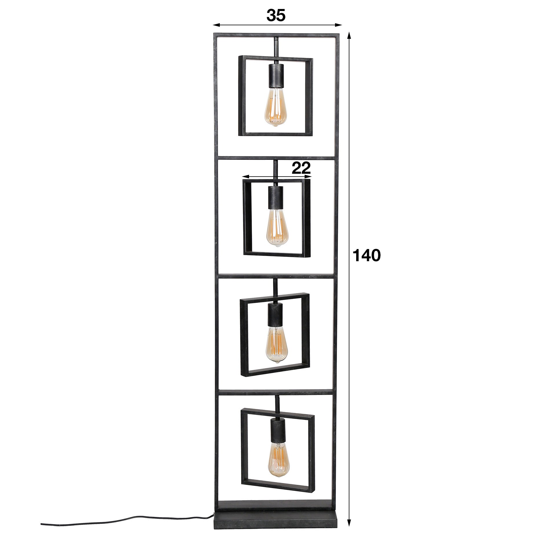 De industriële vloerlamp Kody is een echte blikvanger en zorgt met de vier lichtpunten voor een sfeervolle verlichting in jouw leefruimte! De buitenste vierkanten zitten van de onderste tot de bovenste aan elkaar vast. De binnenste vierkanten kunnen volledig rond draaien, waardoor deze op de gewenste manier geplaatst kunnen worden. Deze vloerlamp Kody is dankzij het design en het gebruik van materialen in elke interieurstijl te plaatsen.