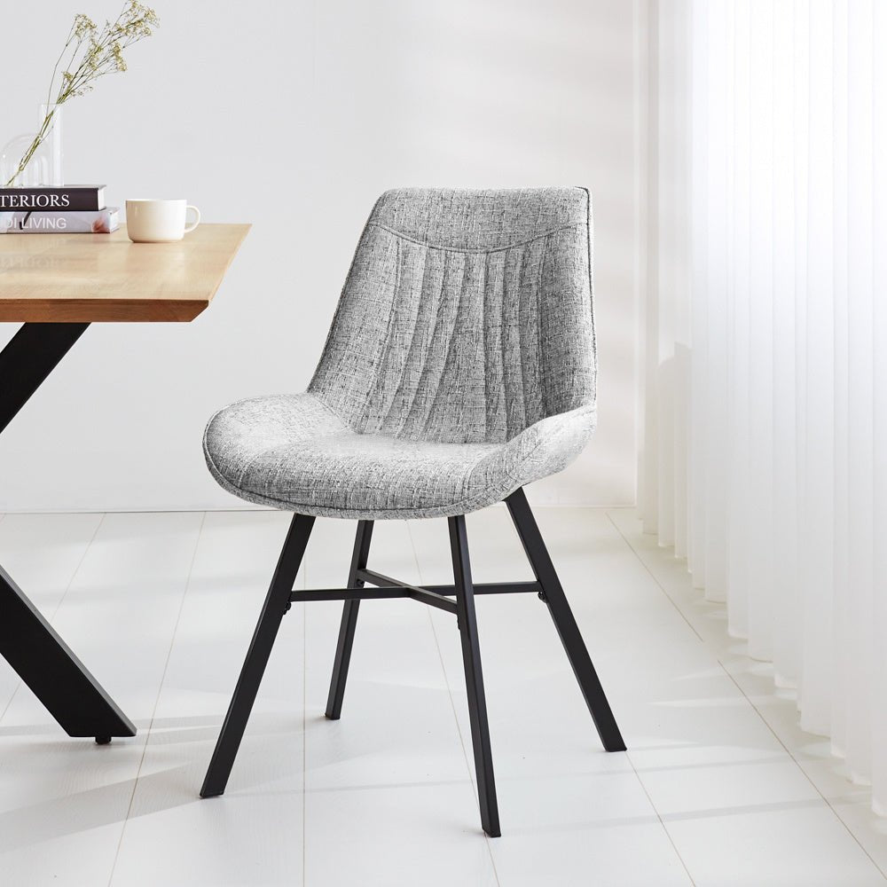 Beschrijving en specificaties van Eetkamerstoel Grijs Chenille Stof Jada - Zonder Armleuningen
