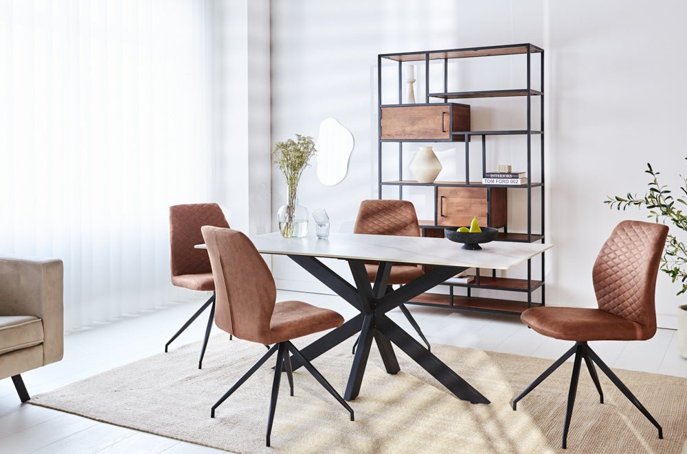 Rechte eettafel Edin met marmerlook is een prachtige eyecatcher in elke eetkamer. De eettafel is een stoere toevoeging aan de eetkamer.