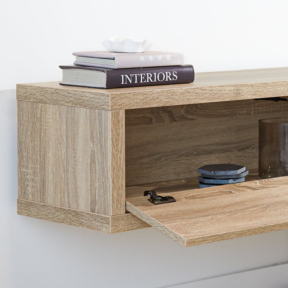Beschrijving en specificaties van Zwevend TV Meubel Bernie Robson Eiken Melamine 145x30x35 cm