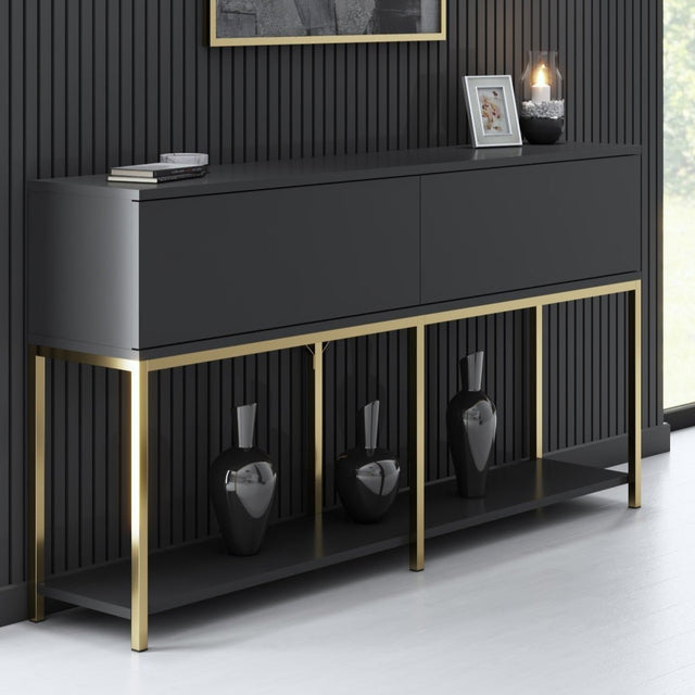 Modern Dressoir Antraciet Lord 150x30x80 - Gouden Frame - Twee Vakken