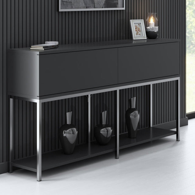 Modern Dressoir Antraciet Lord 150x30x80 - Zilver Frame - Twee Vakken