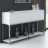 Beschrijving en specificaties van Modern Dressoir Wit Lord 150x30x80 - Zilver Frame - Twee Vakken