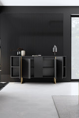 Modern Dressoir Antraciet Luxe 160x80x35 - Gouden Frame